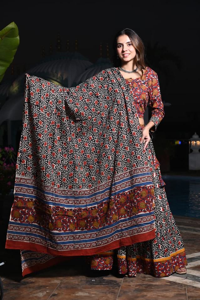 Nombre del producto:Lehenga Choli con Estampado Manual en Bloque