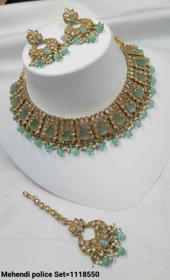 Product Name:Choker Necklace Jewellery Set With Earrings & Maang Tikka