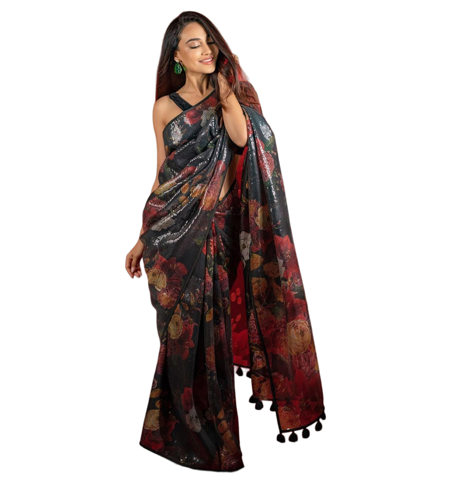 Nombre del producto:Mujer Negro hilo Saree