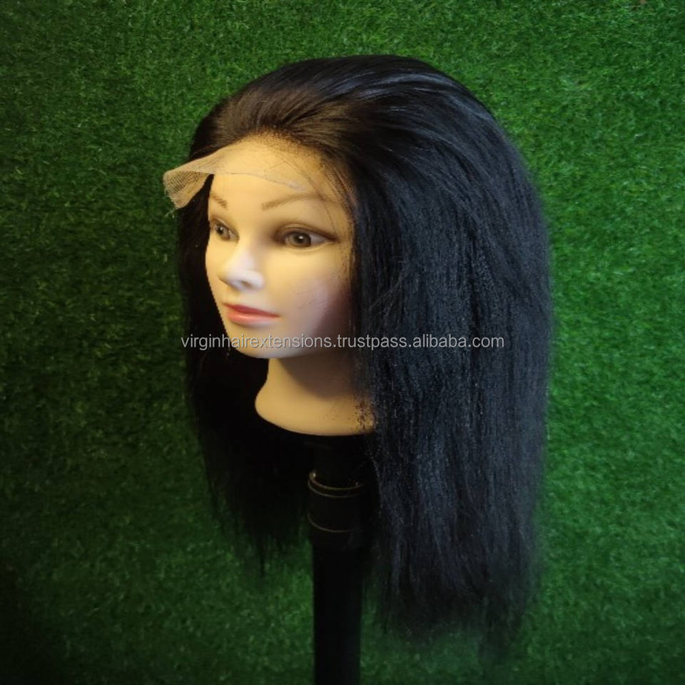 Peluca de cabello humano virgen negro Natural de 30 pulgadas del vendedor indio, tupé de encaje de estilo recto con textura rizada Frontal transparente pequeña