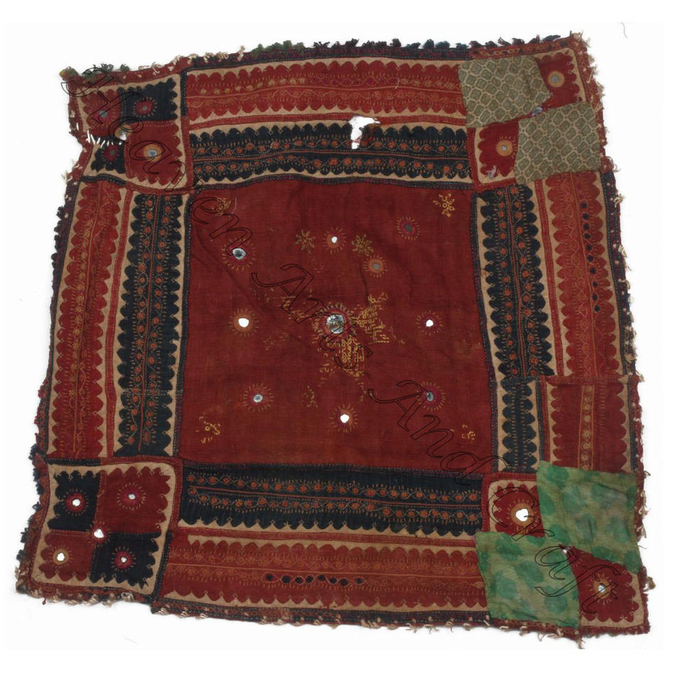 Parche de tela de algodón artesanal para costura de trabajo de espejo bordado Vintage indio para vestido espejo indio Kutch bordado a mano cuadrado antiguo
