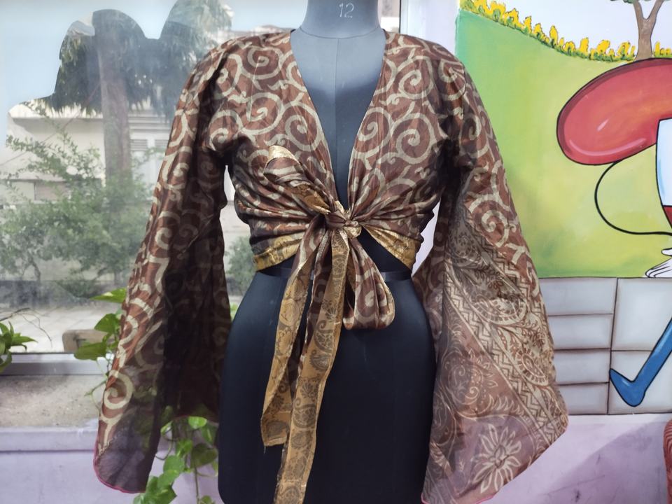 Blusa modesta con cuello en V profundo, mangas largas de campana y corbata frontal informal, Top corto de seda ligero y suave para uso diario