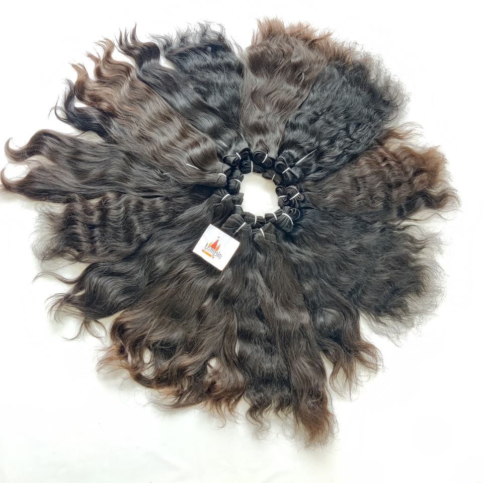 Extensiones de cabello humano sin procesar de La Virgen India 100%, paquete de templo, ninguno procesado químico, ondas profundas sueltas, rizos, precio barato