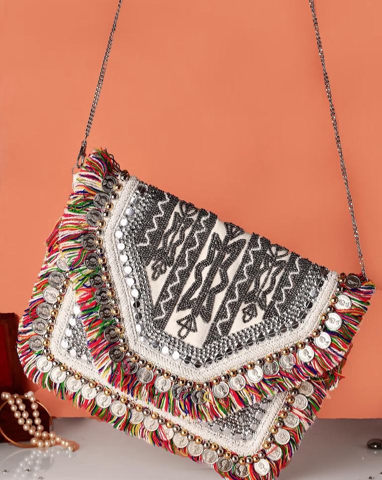 Bolsos de mensajero de embrague hechos a mano de diseñador de estilo bohemio para mujer india, bolsos de fiesta de compras de noche con cuentas de gran capacidad