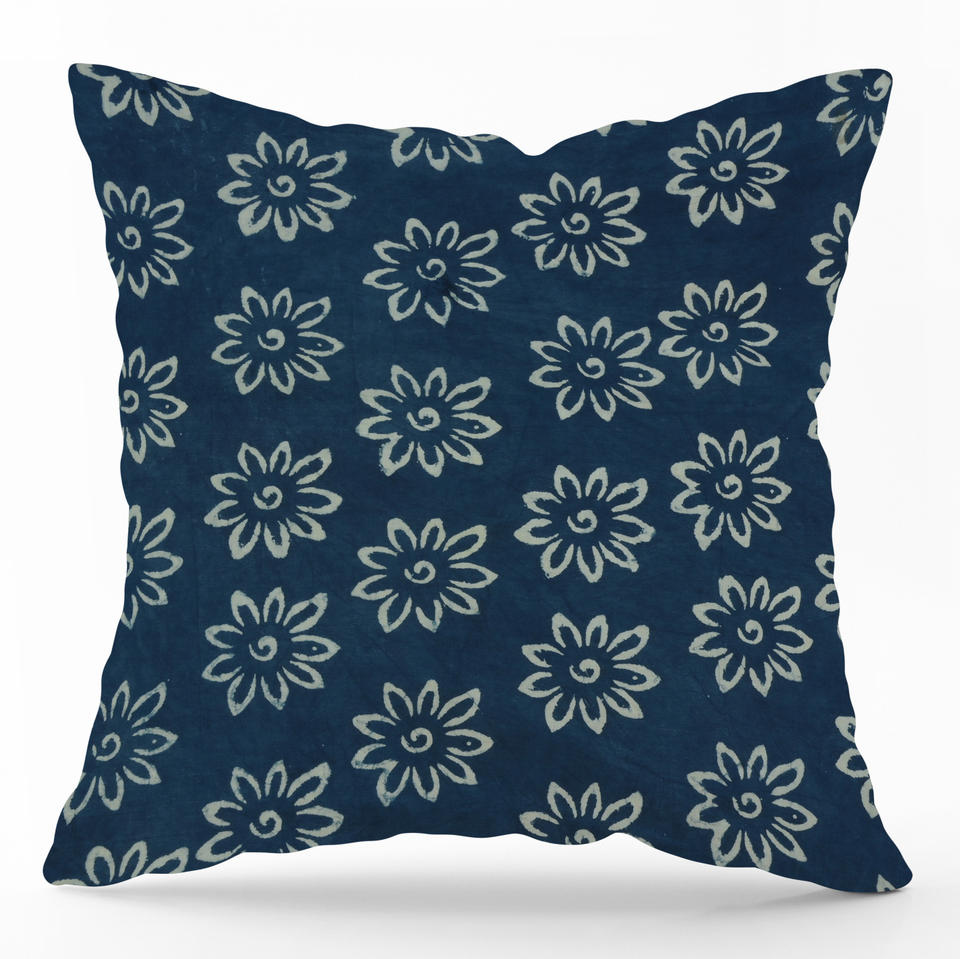Funda de Cojín de Algodón Lavable Ecológica con Patrón Sólido Índigo, Cojín Decorativo Hecho a Mano para el Hogar, Hotel, Hospital
