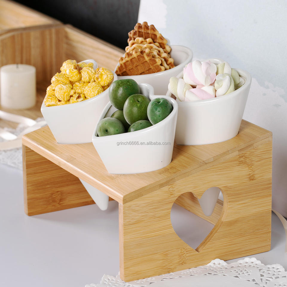 Conos Individuales de Cerámica en Forma de Corazón, Plato de Cerámica Blanco para Servir Bocadillos, Frutos Secos, Estación de Aperitivos de Cerámica en Forma de Corazón