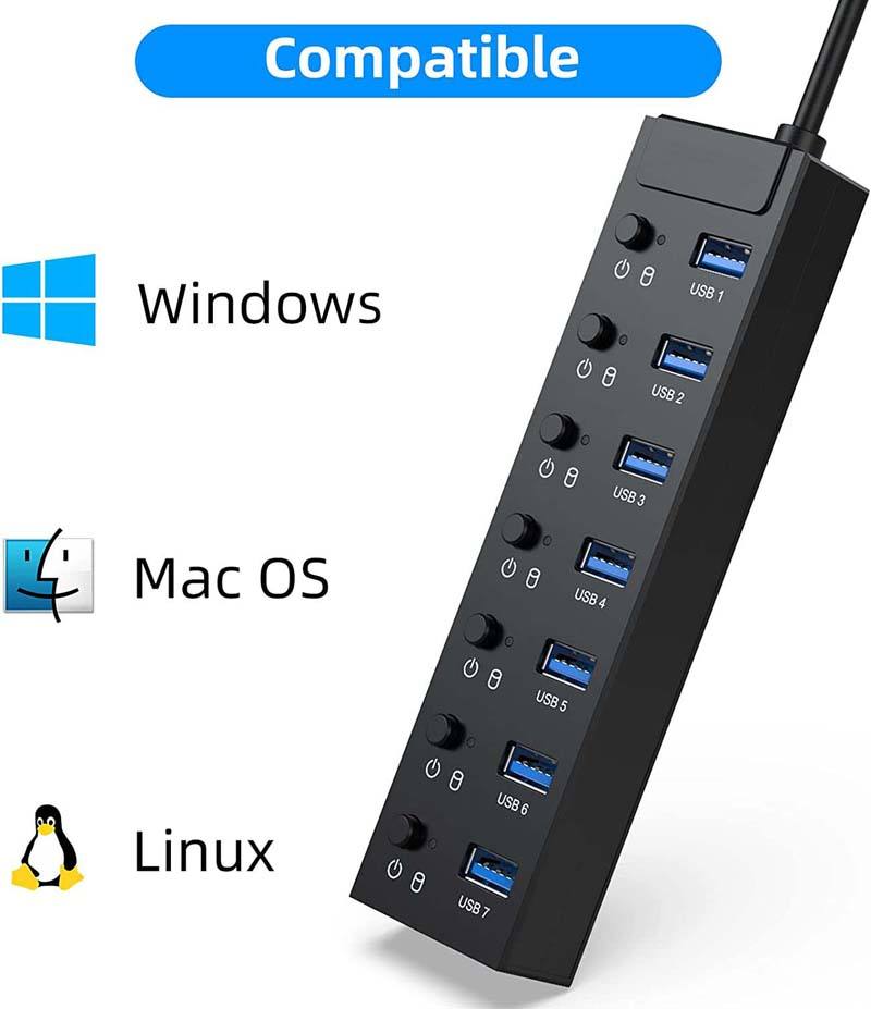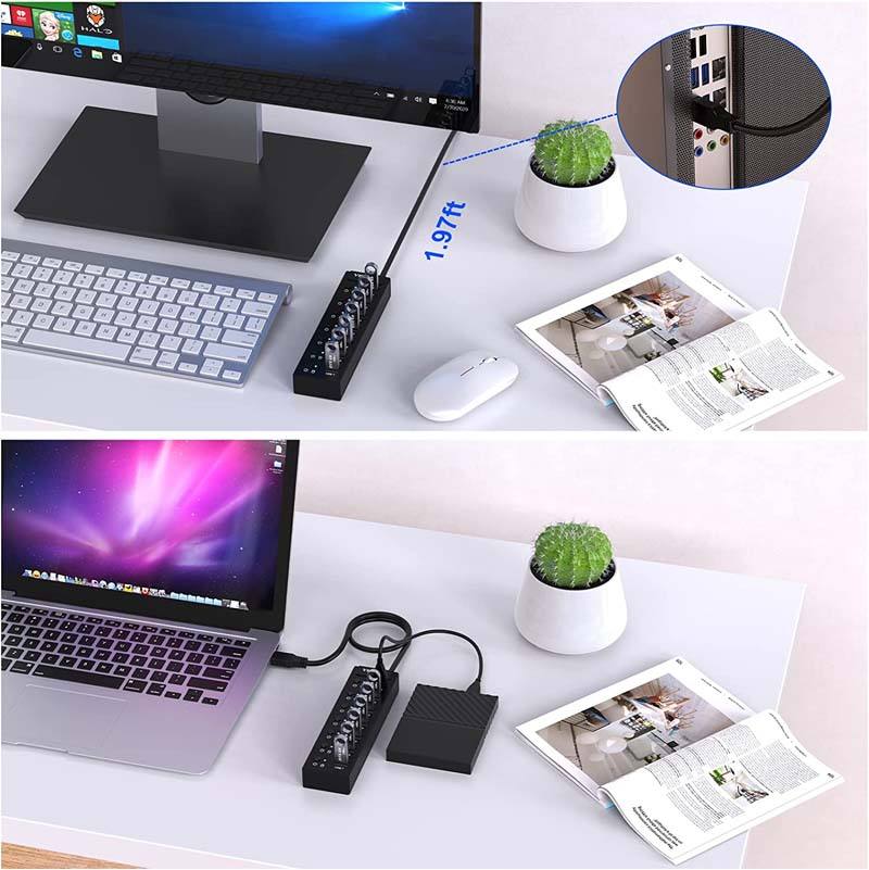 Interruptores de alimentación individuales y LED Transferencia DE DATOS DE 7 puertos 5Gbps USB 3,0 HUB para teclado de ratón HDD T-flash