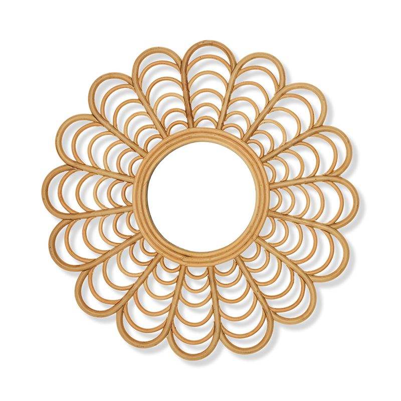 Indonesio hecho a mano diseño bohemio ratán en forma de flor 60x60cm espejos de pared Natural lujoso decoración del hogar colecciones especiales