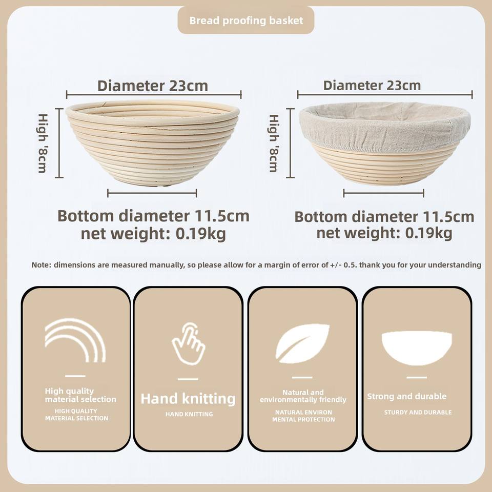 Cesta de Fermentación de Ratán Natural Indonesio para Pan de Levadura, Tejida a Mano, Redonda de 23 cm con Cubierta de Tela de Algodón y Lino