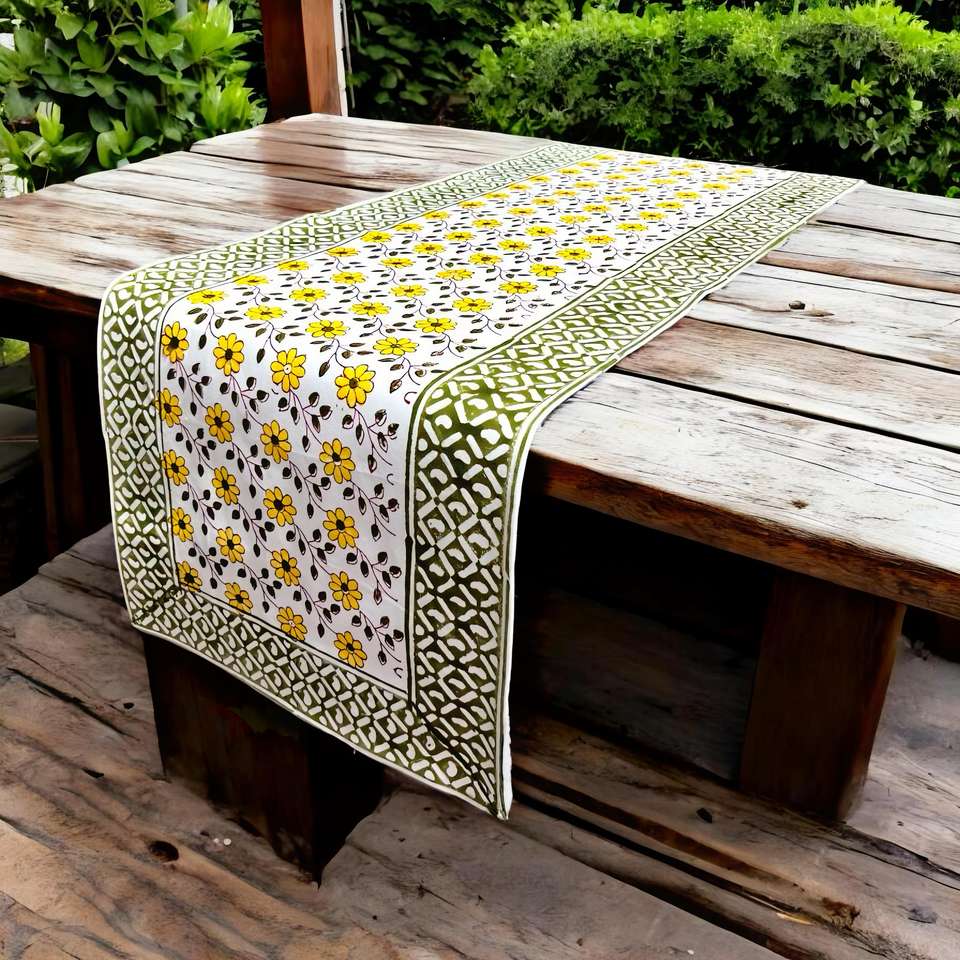 Elementos interiores Lona de algodón Bloque de mano Impreso Camino de mesa Flor Camino de mesa Algodón Blockprint Impreso Camino de mesa