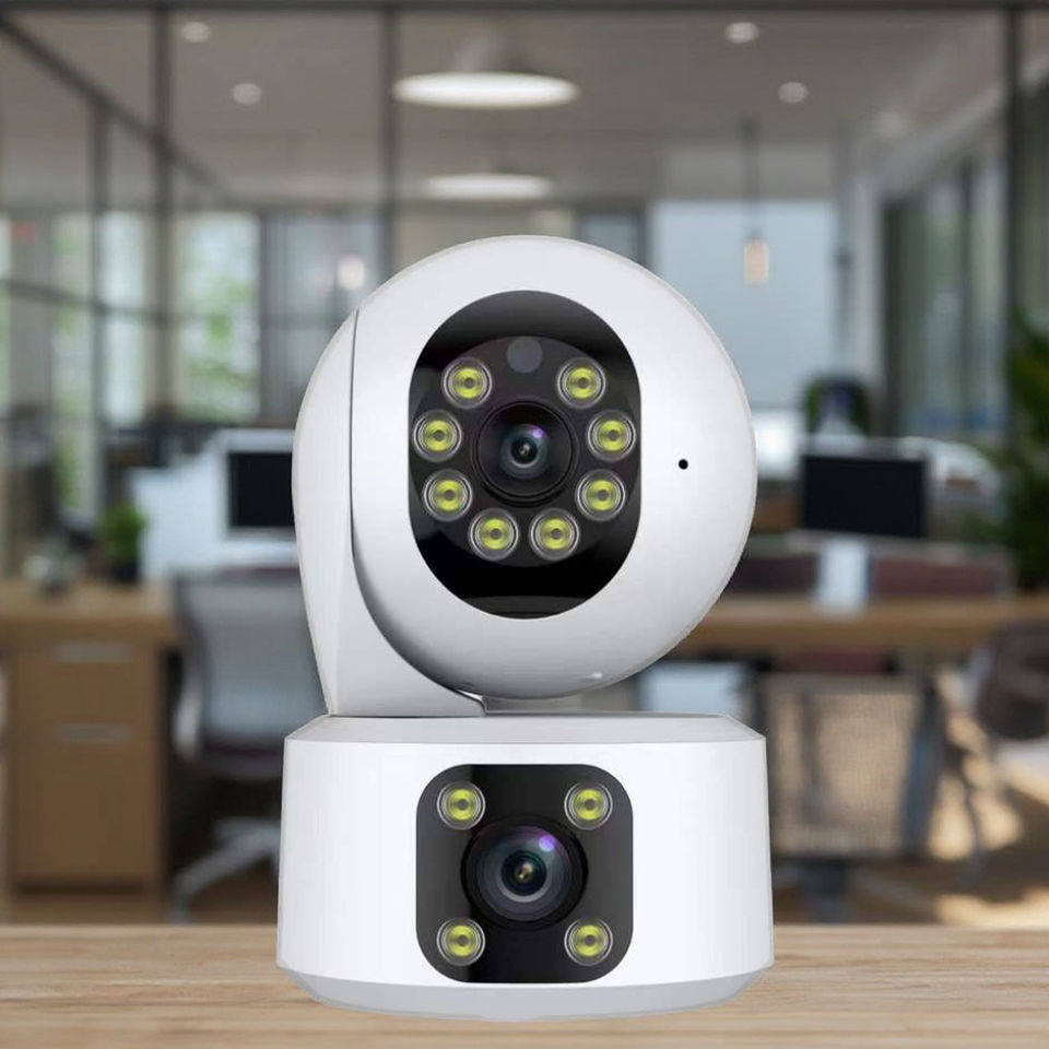 Interior Exterior 4MP Lente dual Cámara IP Visión nocturna Gran angular Mini tarjeta SD NVR