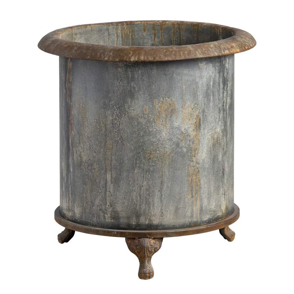 Maceta rústica galvanizada para interiores y exteriores con agujeros de drenaje y marco resistente que proporciona un uso versátil durante todo el año