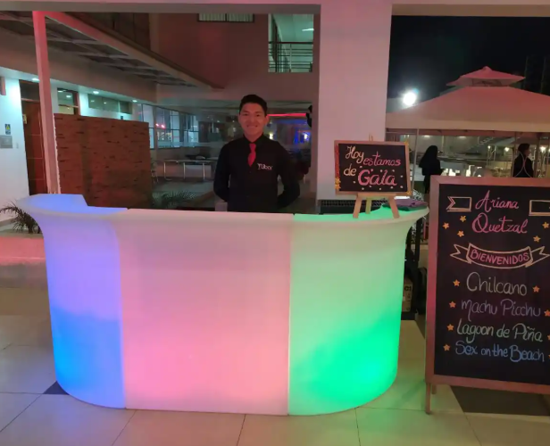 Juegos de muebles de barra de plástico portátil para interiores y exteriores Mostrador de Bar Tiki iluminado con LED para clubes nocturnos