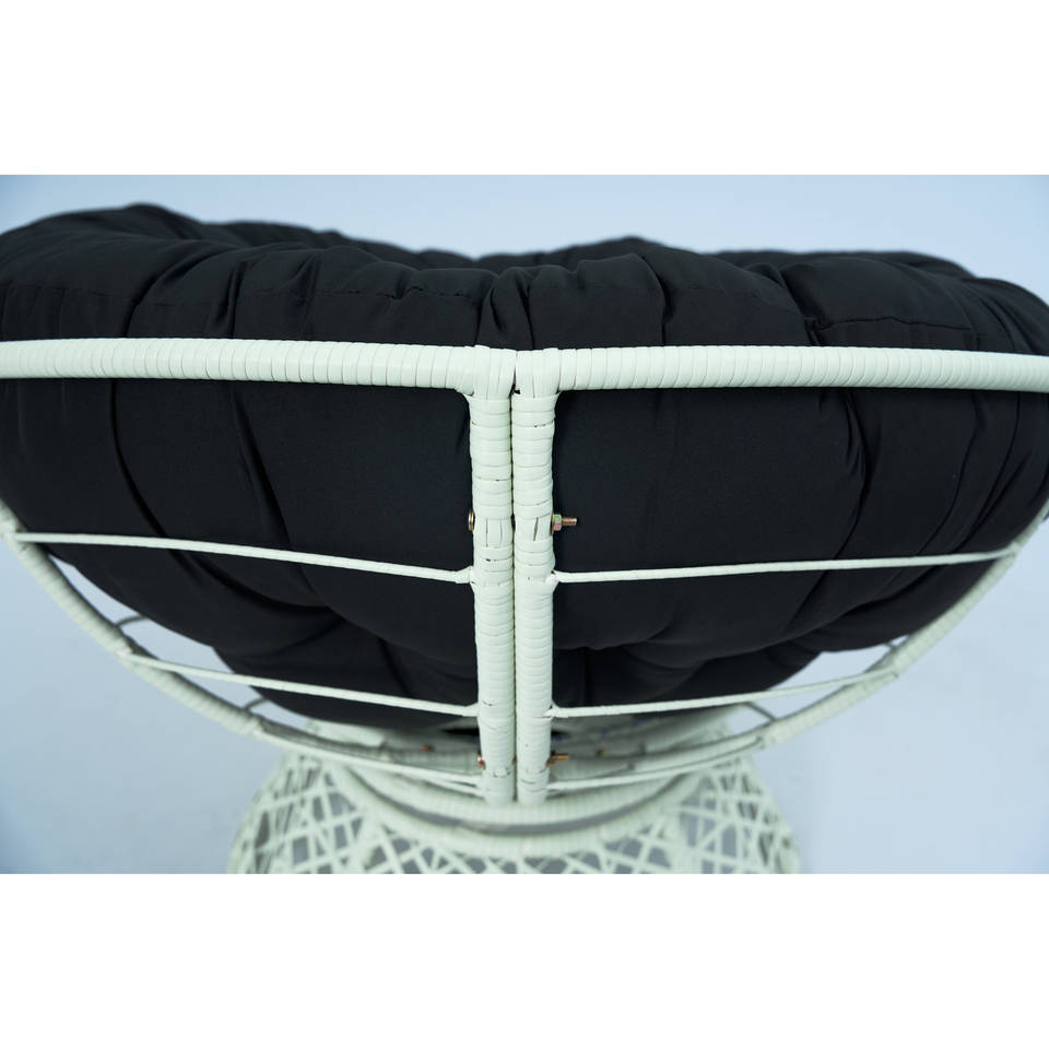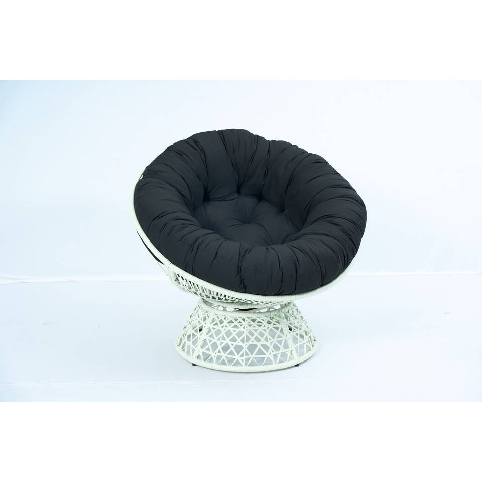 Silla Papasan redonda para interiores/exteriores con cojín grueso y base giratoria de ratán