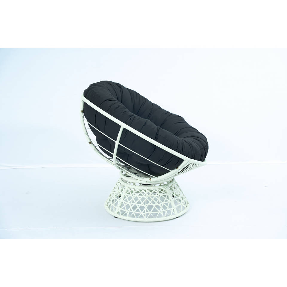 Silla Papasan redonda para interiores/exteriores con cojín de mechones gruesos y base giratoria de ratán
