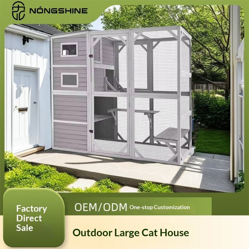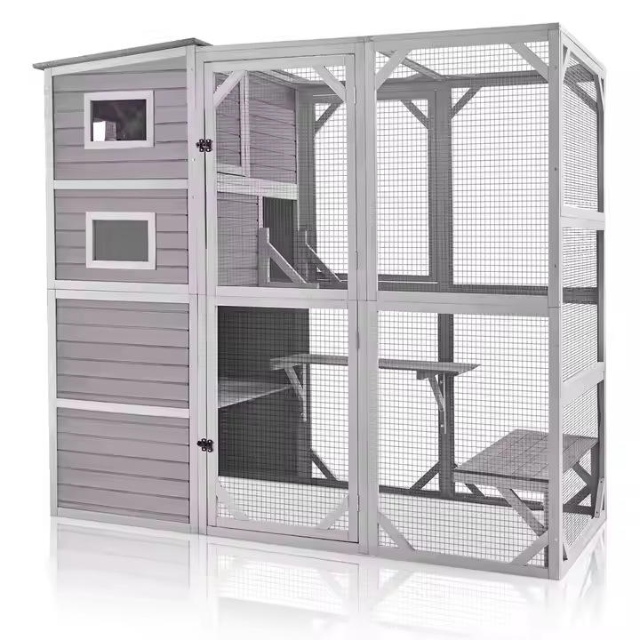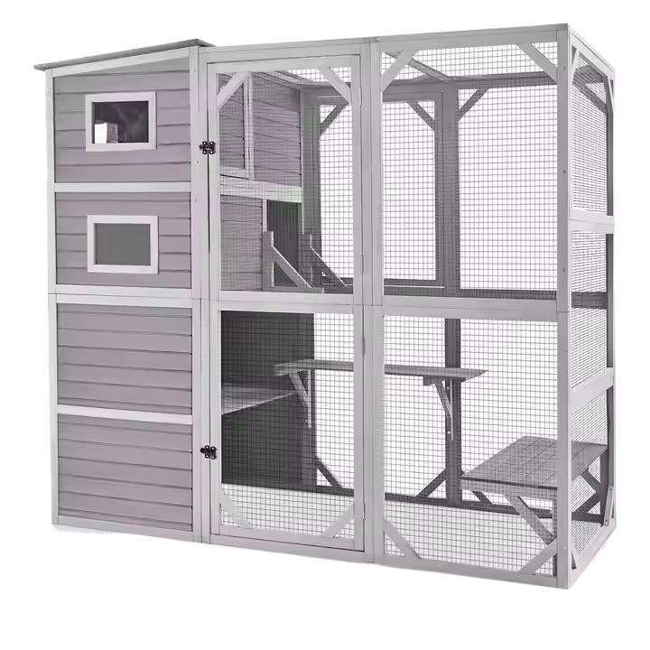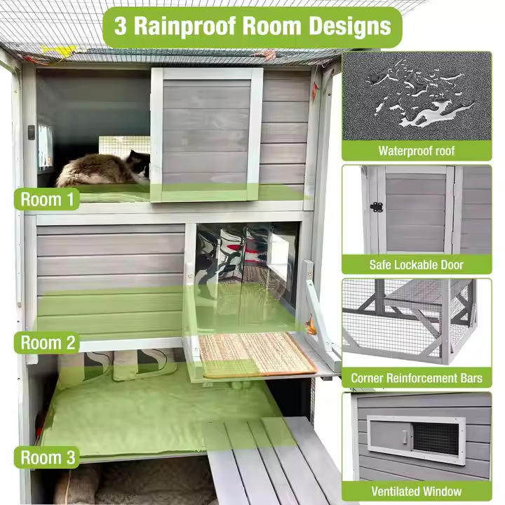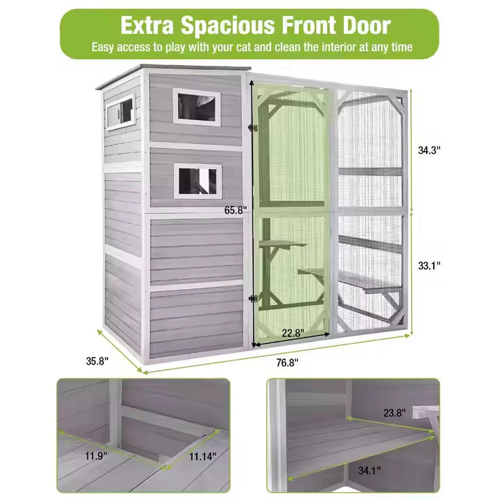 Villa para Gatos Rectangular con Marco de Madera para Interiores/Exteriores, Espacio Extra Grande, Impermeable, Protección Solar, Cálida, Casa para Mascotas, Jaula, Nido