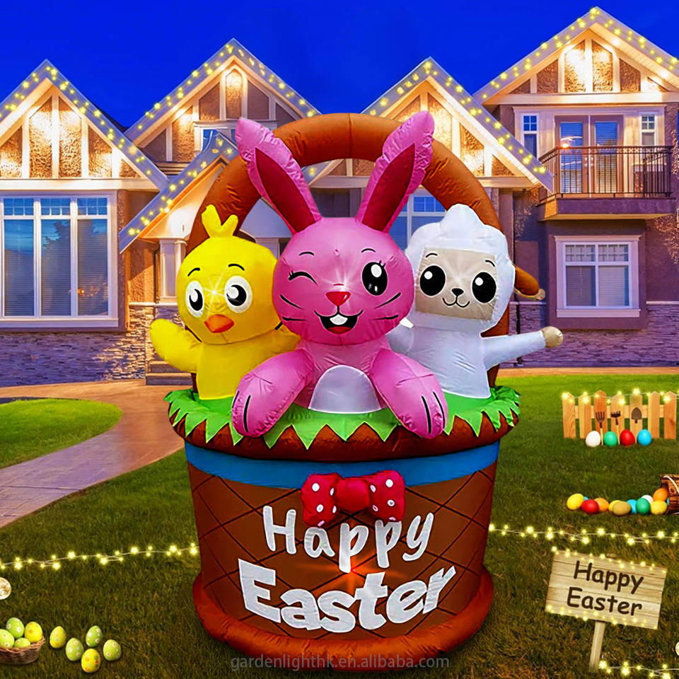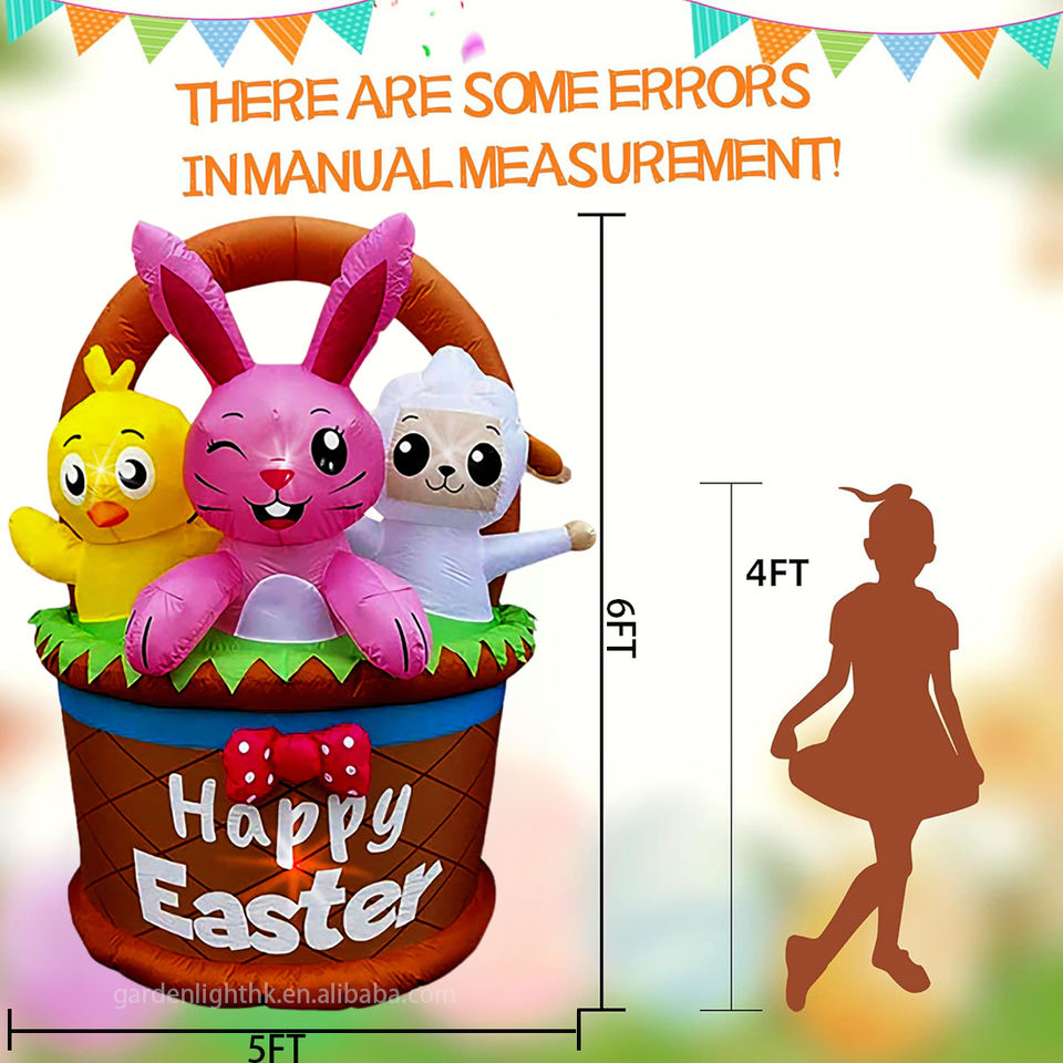 Nombre del producto:Conejo, pollito y oveja inflables de Pascua de 1,8 m en cesta