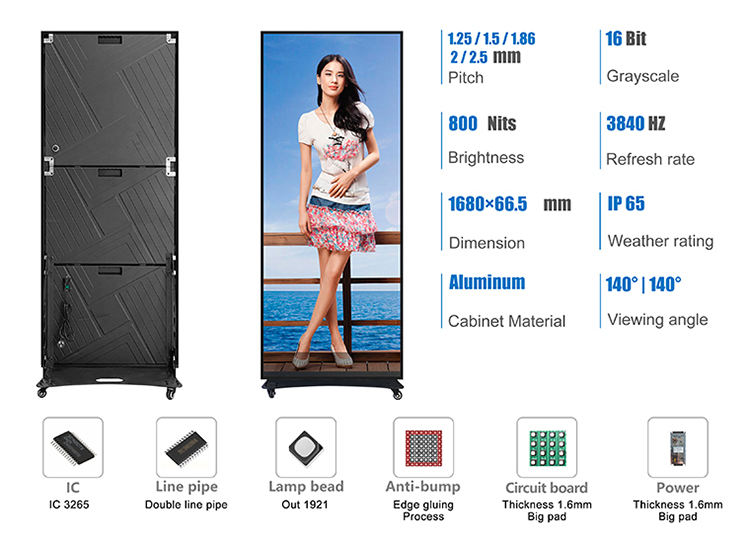 Interior p2.5 reproductor de publicidad inteligente pantalla LED Marco de póster digital soporte de exhibición montado en la pared interior