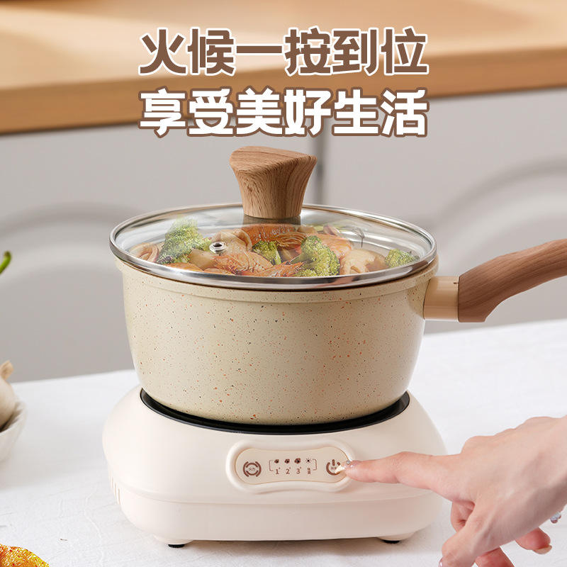 Cocina de Inducción, Mini Estufa Eléctrica de 710W, Control Táctil, Un Solo Quemador, Panel de Cerámica, Carcasa de Plástico Blanca y Negra