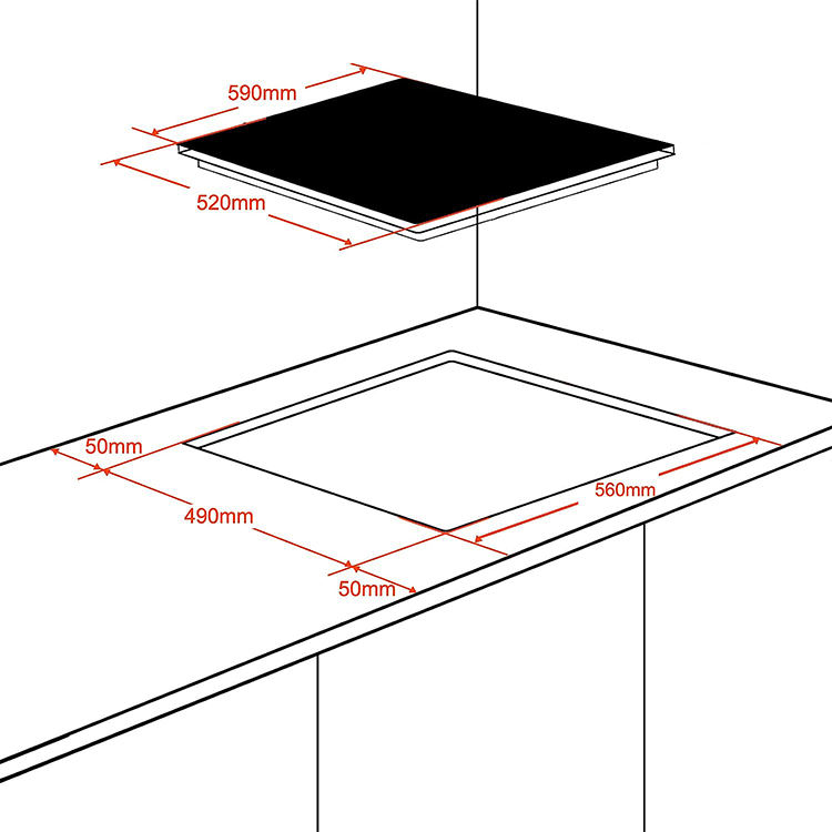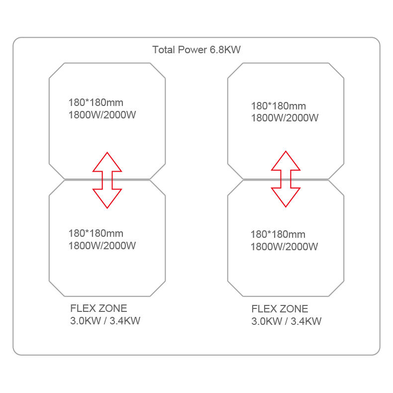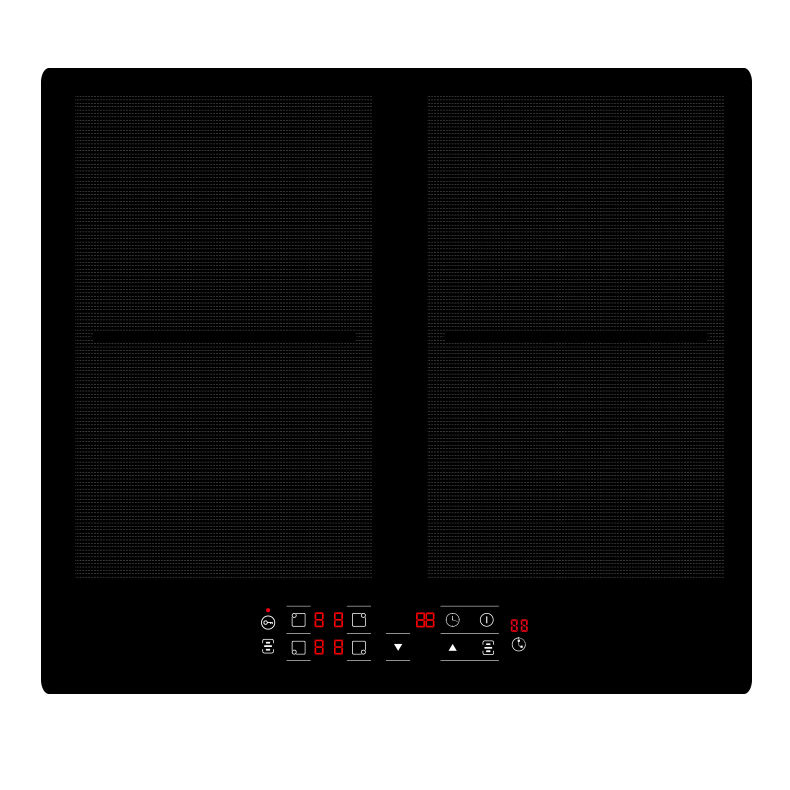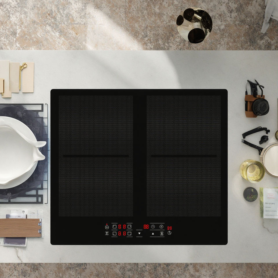 Estufa de inducción 23,22 "Puente eléctrico integrado de zona flexible y estufa negra de 4 elementos en total