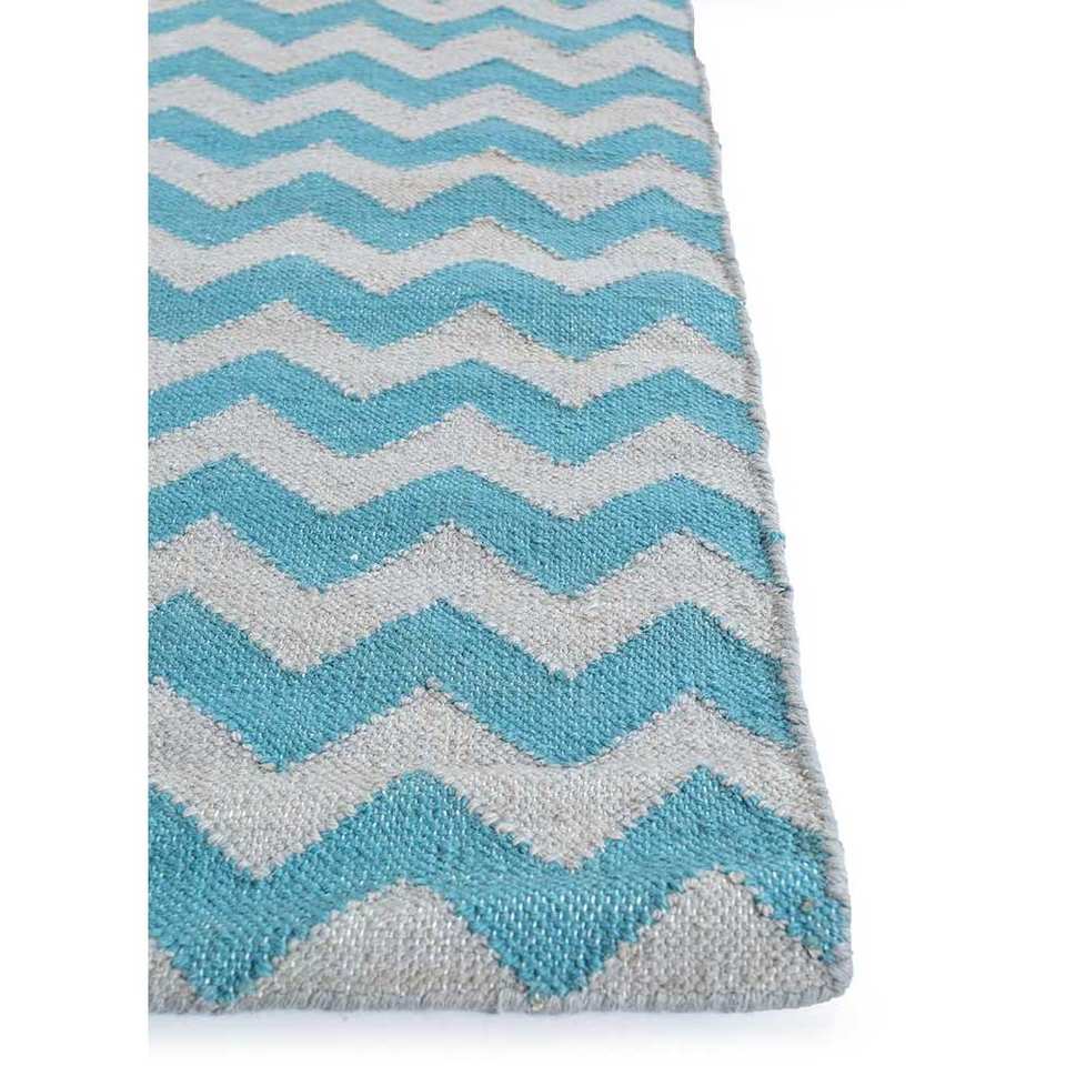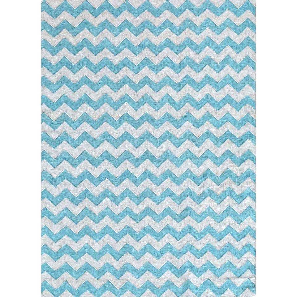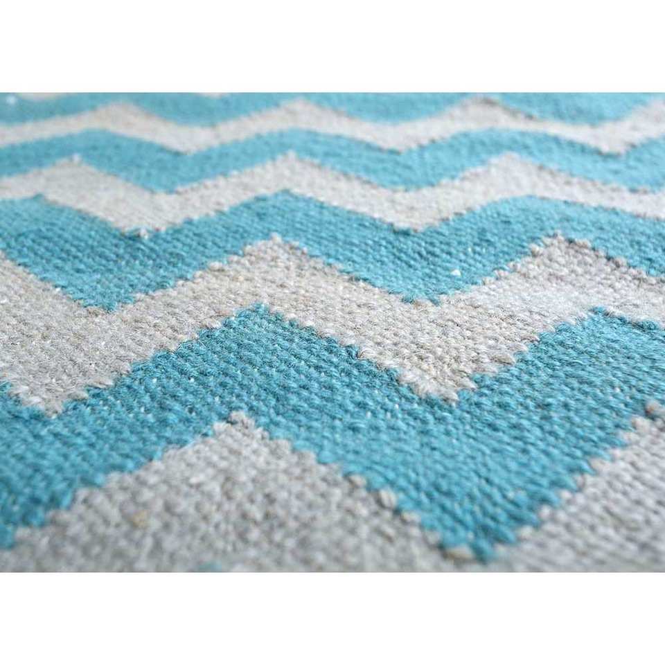 Alfombras de Lana Hechas a Mano Indusbar, Tejido Plano Azul, Rectangulares de 9x12 con Diseño de Chevrón para Entrada, Pasillo, Sala de Estar, Modelo Dwrm-170