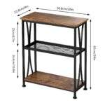 Mesa auxiliar industrial de 3 niveles – Soporte decorativo de madera rústica con estante de malla y estructura de acero negro