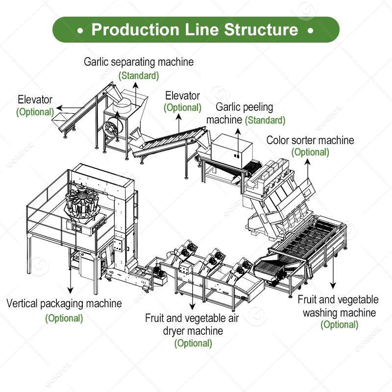 Línea de procesamiento de pelado de ajo