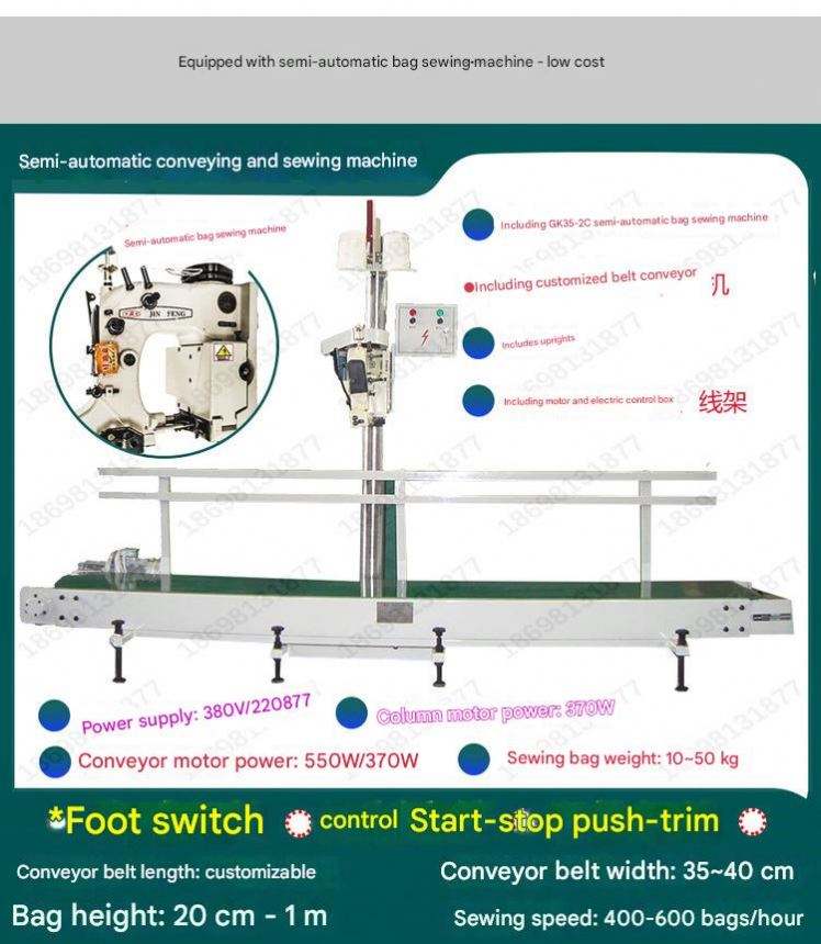 Máquina de Coser Semiautomática Industrial y Comercial para Bolsas de Papel Kraft, Bolsas Tejidas, Máquina Cerradora de Bolsas de Papel