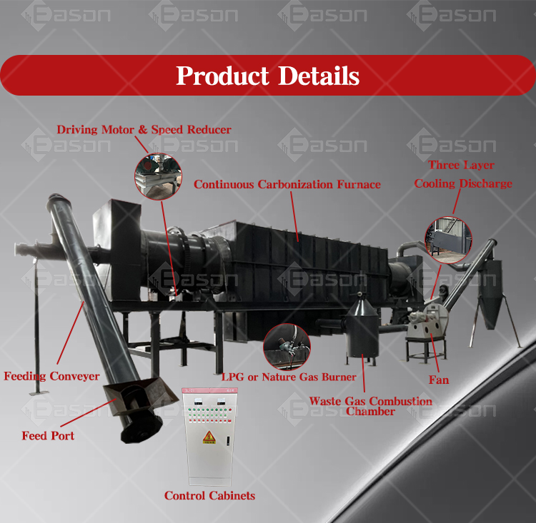 Nombre del producto:Línea de producción de carbón de leña continua Pine Cone Olive Shell