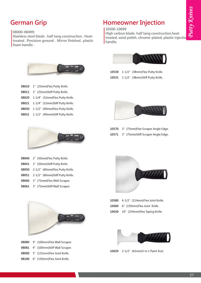 Flex Putty Knife-1:08030 1-1/2"(40mm)/08040 2"(50mm)/08050 2-1/2"(60mm)
