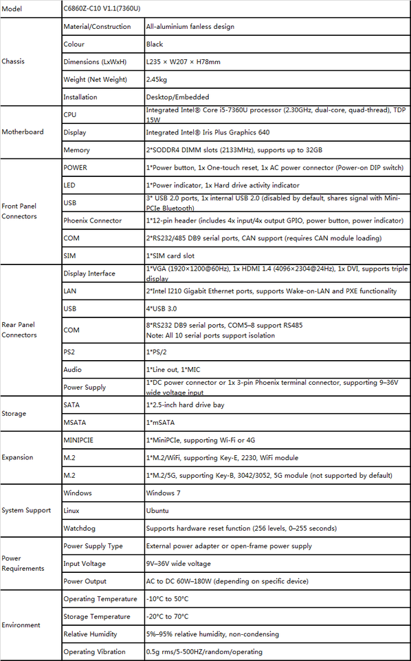 Memory:2*SODDR4 DIMM 2133MHz memory, support up to 32GB