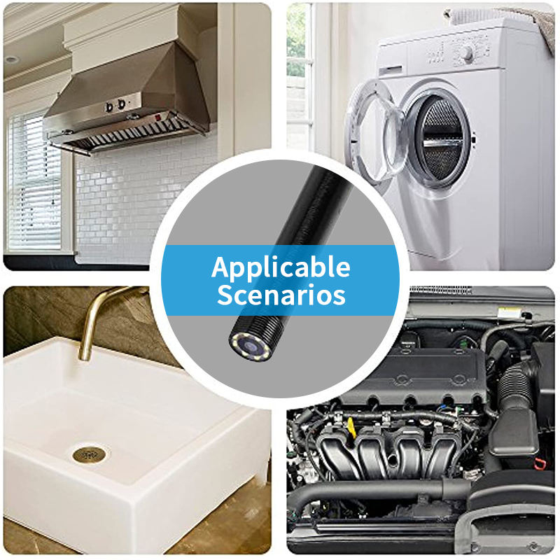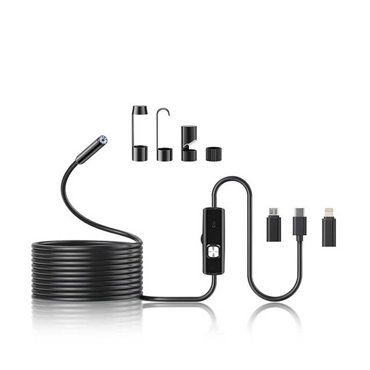 Endoscopio industrial — Incluye accesorios prácticos: manguito roscado, espejo, gancho curvo y gancho magnético. Más usos.