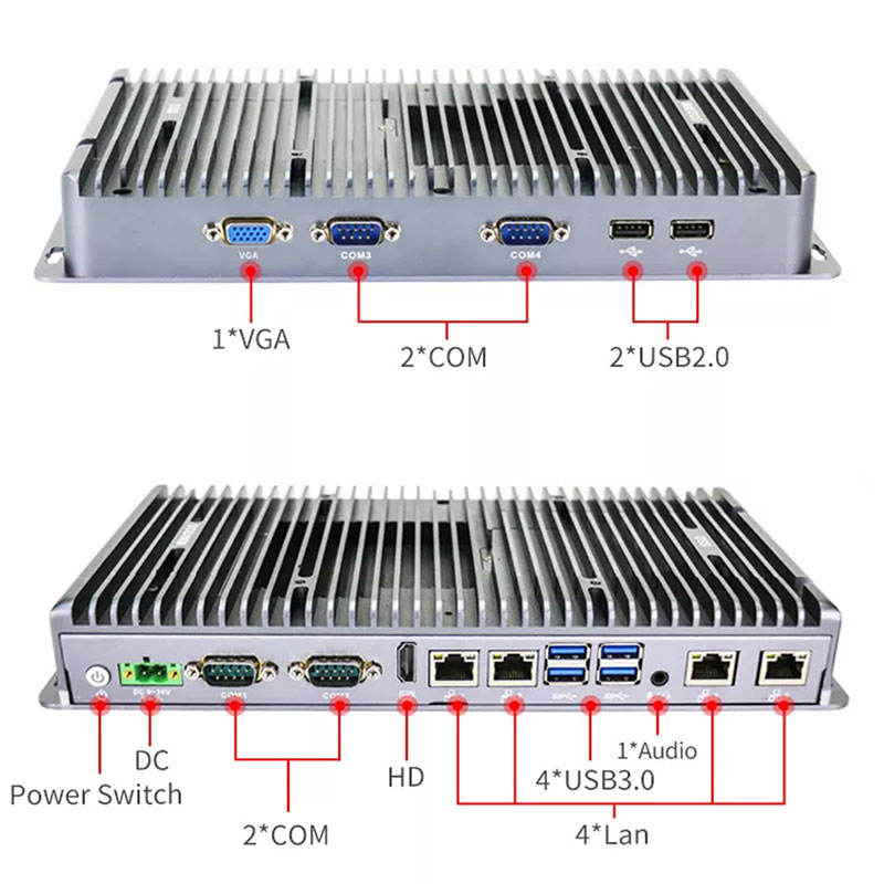 Mini PC industrial sin ventilador Intel Core I7 10810U I5 8260U I3 10110U DDR4 4x1000M LAN 4xCOM Micro computadora para IoT Edge Computing