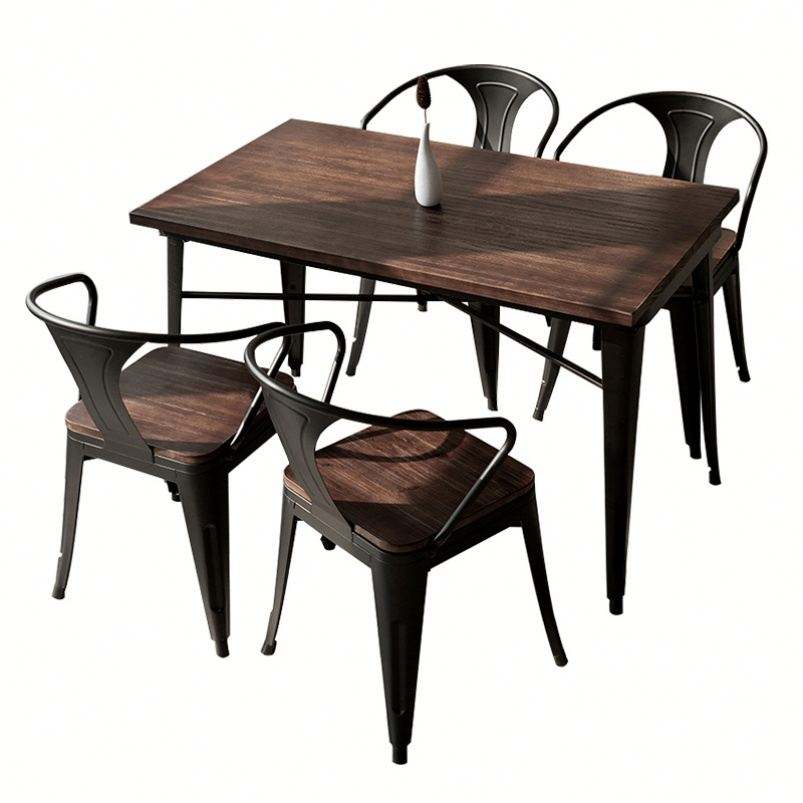 Juegos industriales de metal y madera para cafetería de comida rápida, juego de mesa de comedor para restaurantes para 4