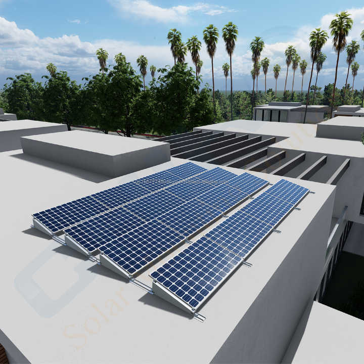 Sistema de Paneles Solares Fotovoltaicos para Techos Planos Industriales, Soporte de Lastre Escalable para Almacenes y Fábricas