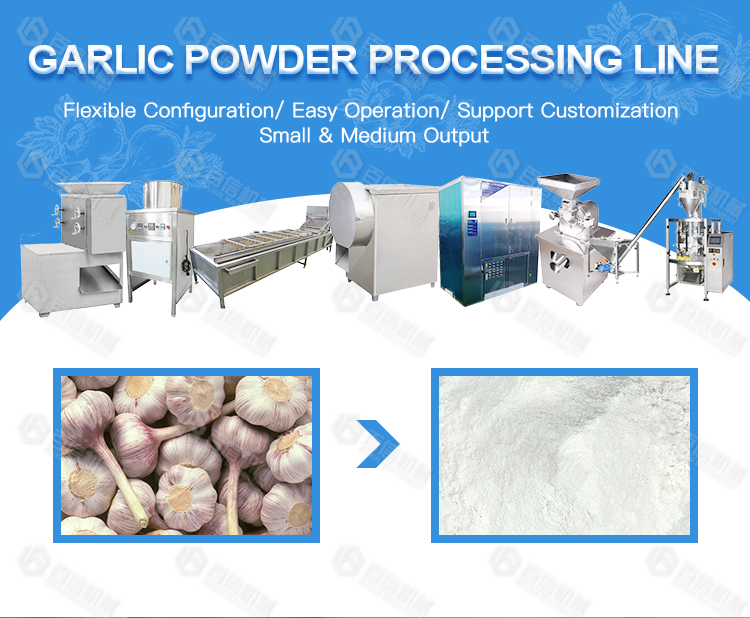 Máquina industrial de frutas para producción de polvo de ajo, fabricación de harina con secado, pelado, rebanado, proceso de molienda