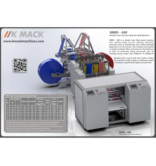 Máquina Industrial GBRD 600 Totalmente Automática para Fabricación de Rollos de Bolsas de Plástico Biodegradables con Sellado en Estrella de Doble Línea, de Alta Resistencia, KMack India