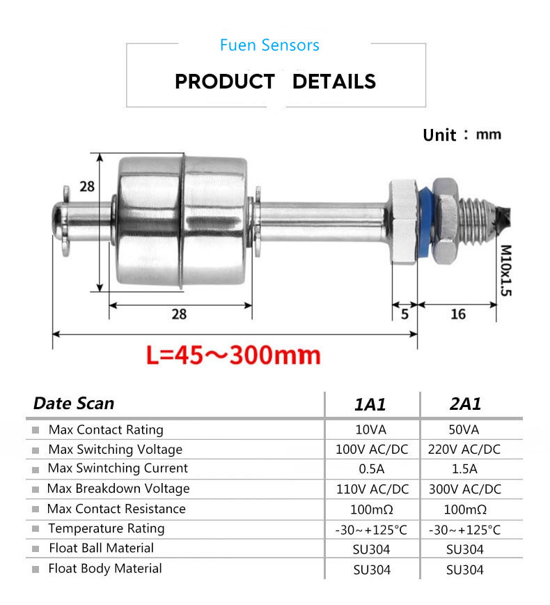 Interruptor de Nivel Magnético Industrial de Acero Inoxidable 304 para Tanque de Ácido