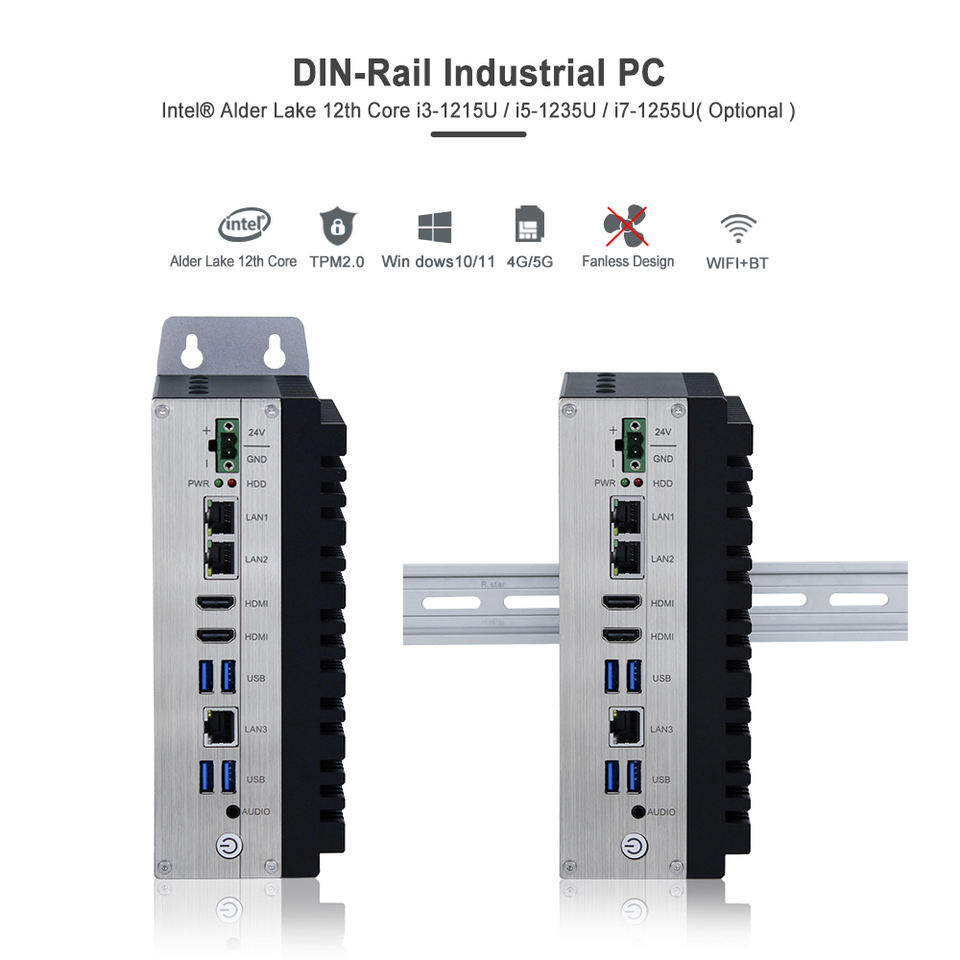 Mini PC industrial sin ventilador 12th Intel Core Alder Lake I3/I5/I7/I9 con DDR5 64GB 2X RS232/422/485 computadora integrada en stock