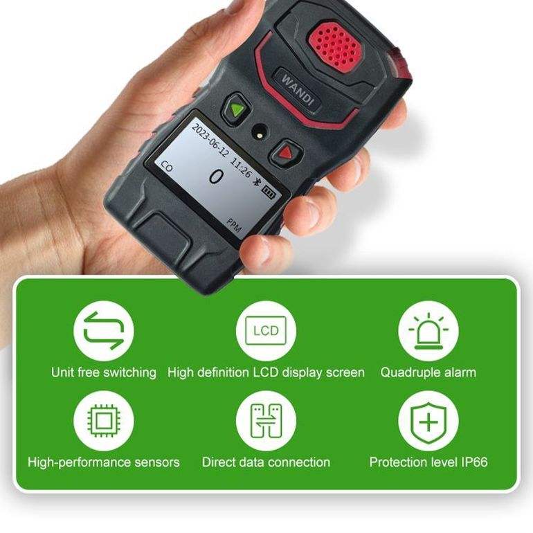 Detector de Oxígeno Industrial, Sensor de Alta Sensibilidad, Monitoreo en Tiempo Real, Alarma de Fuga de Oxígeno, Pantalla LCD IP66, Portátil