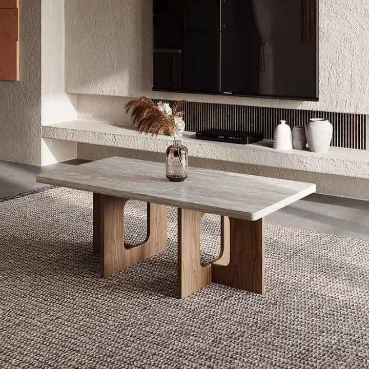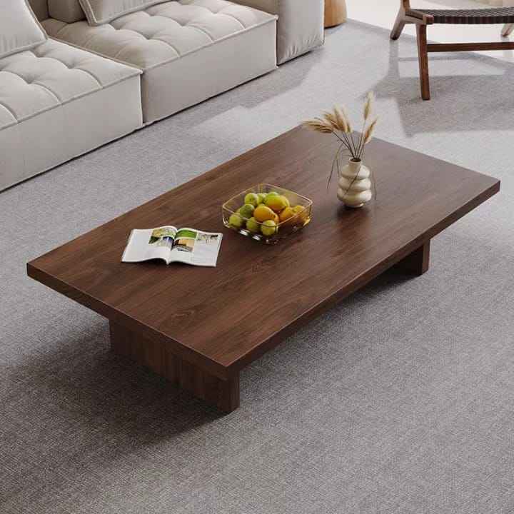 Mesa de Centro Rectangular Industrial con Cubierta de Madera Enchapada y Patas de Cilindro de Metal Negro, Mesa Grande para Sala de Estar u Oficina
