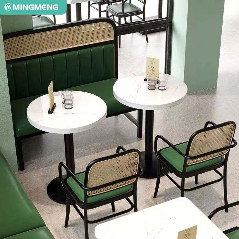 Conjuntos de restaurantes industriales, sillas y mesas de café de Metal de cuero duradero barato hechas en fábrica, sillas de restaurante, mesas a la venta