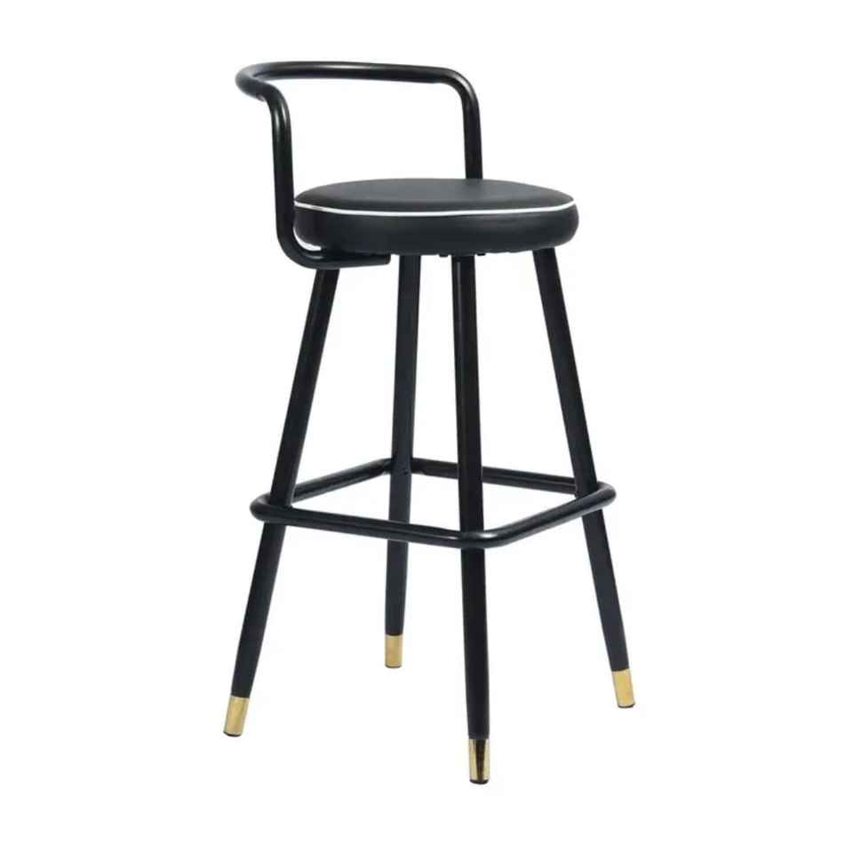 Taburete de Bar Industrial con Remaches, Asiento Acolchado de Cuero PU Marrón Vintage, Estructura Metálica, Altura de Mostrador, para Cocina o Isla