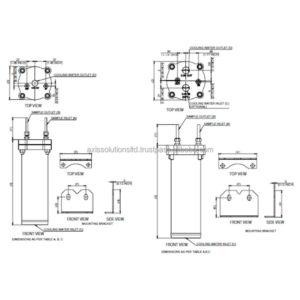Sample Inlet 1/4" OD tube | Sample Outlet 1/4" OD tube
