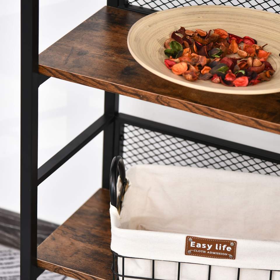 Mesa Consola de Estilo Industrial de 3 Niveles con Diseño Robusto y Multifuncional, Patas Ajustables y Funcionalidad de Librero