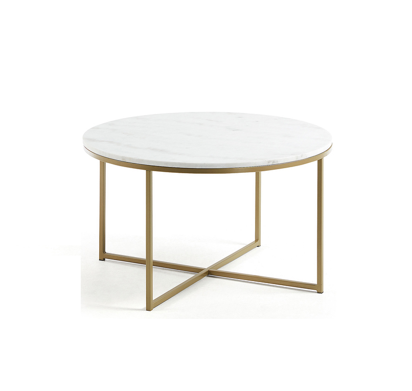 Mesa de centro redonda de madera de mango áspero de estilo industrial con marco de metal, muebles de sala de estar, muebles de dormitorio, mesa decorativa