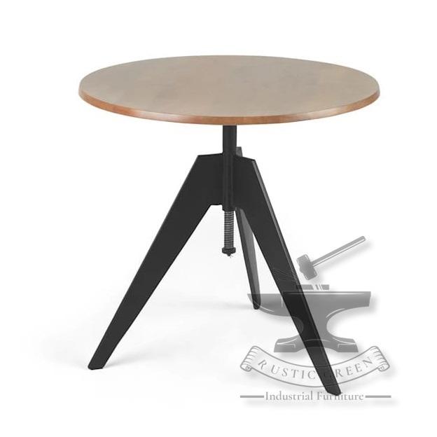 Mesa de café de metal industrial con parte superior de madera redonda de tres patas de altura ajustable para sala de estar al aire libre uso de hotel o comedor