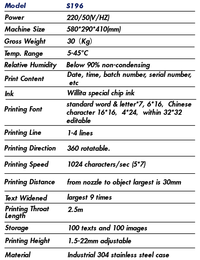 ElegirNúmero de modelo: Impresora de inyección de tinta CIJ WLD-196