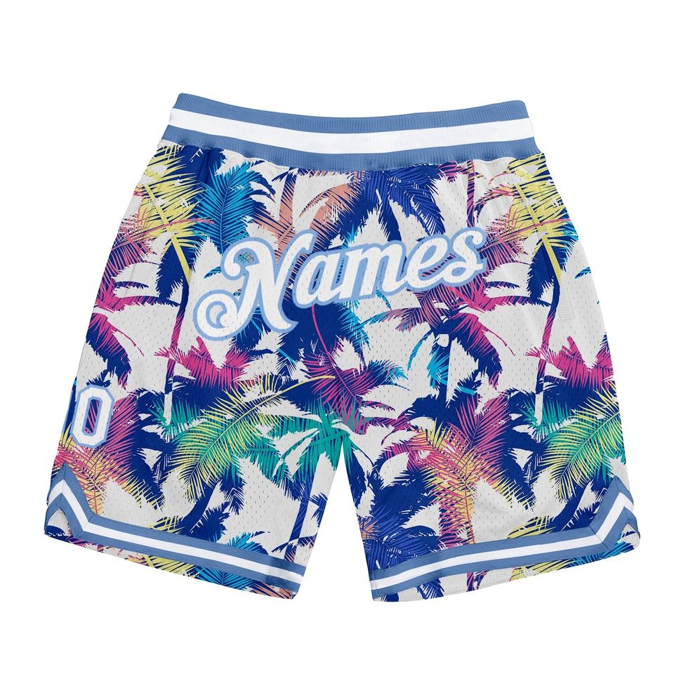 Pantalones cortos de baloncesto Industrie Direct Engro Sportswear Custom White-Light Blue 3D Palmeras Pantalones cortos de baloncesto auténticos