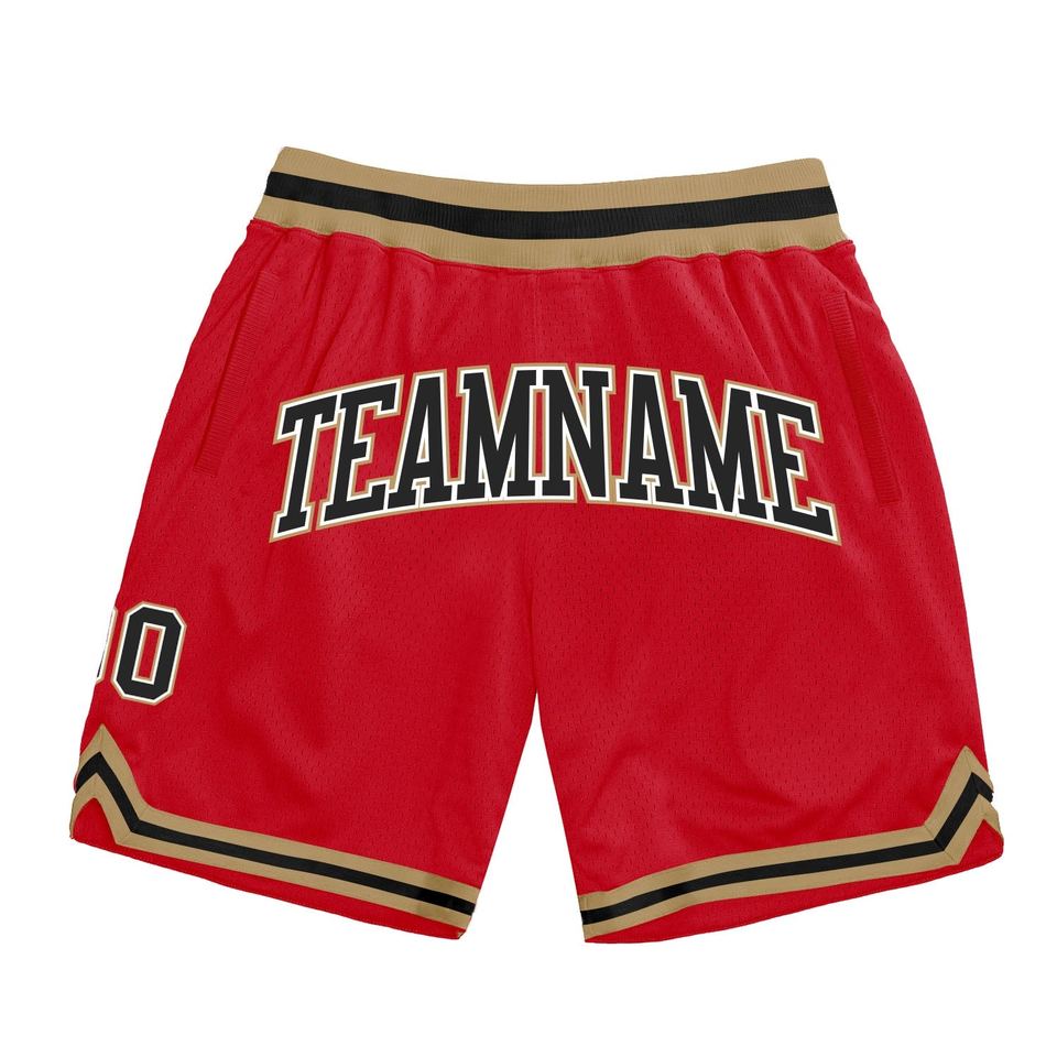 Industrie Direct Engro Sportswear Pantalones cortos de baloncesto Custom Red Black-Old Gold Authentic Throwback Basketball Shorts